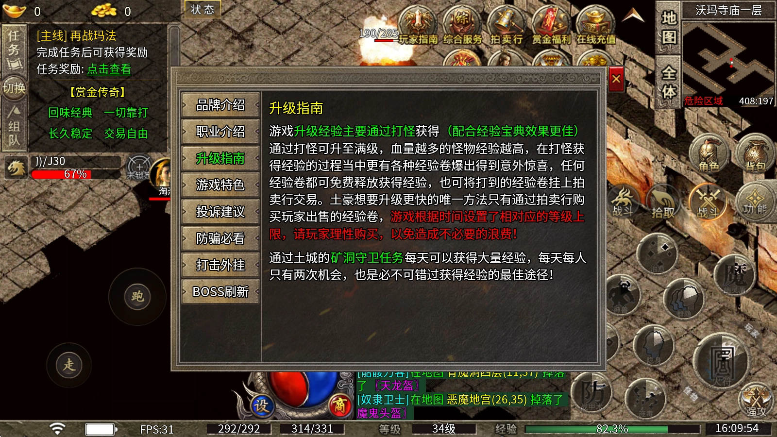 1、游戏里升级所需的经验主要靠打怪获取(要是搭配经验宝典使用,效果会更好),通过打怪就能升到满级,而且怪物的血量越多,能获得的经验也就越高。