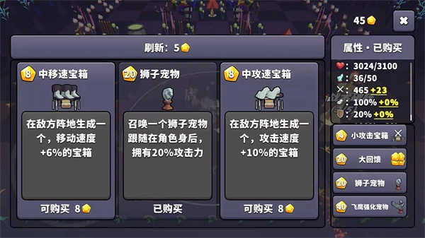 3、进入商店后,花费一定数量的金币,就能购买宝箱、宠物等物品,可根据自身需求灵活挑选。