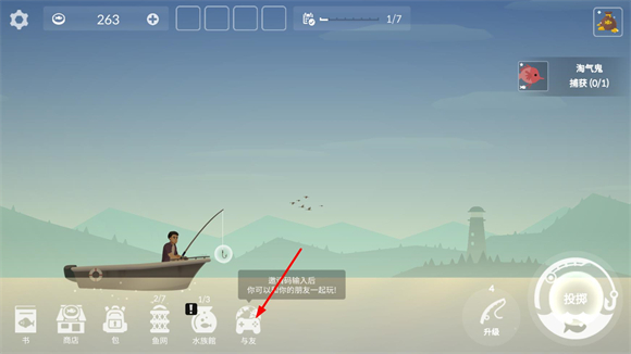 3、当鱼上钩后点击按钮来收杆获得钓到的鱼。