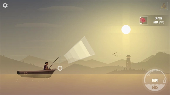 2、点击右下方的投掷按钮可投出鱼饵进行垂钓,点击时能够选择抛掷的力度。