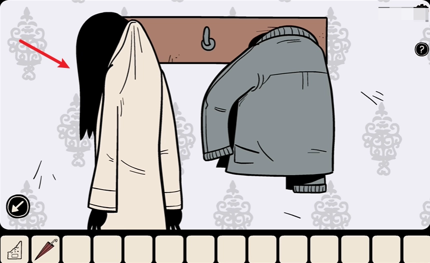 墙上挂着两件衣服,你拿起雨伞,又查看了右边那件褂子的衣兜,从中翻出一张残破的纸片,上面画着些让人摸不着头脑的图案。