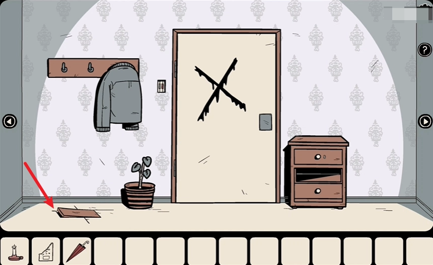 5、这里除了花盆之外,剩下的就是一片翘起的地板了。花盆里放着一块石头,把它取出来,接着你往右边转。