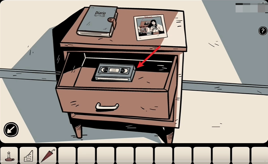6、随后进入左侧的房间,在这个房间的柜子里能找到一盘磁带。