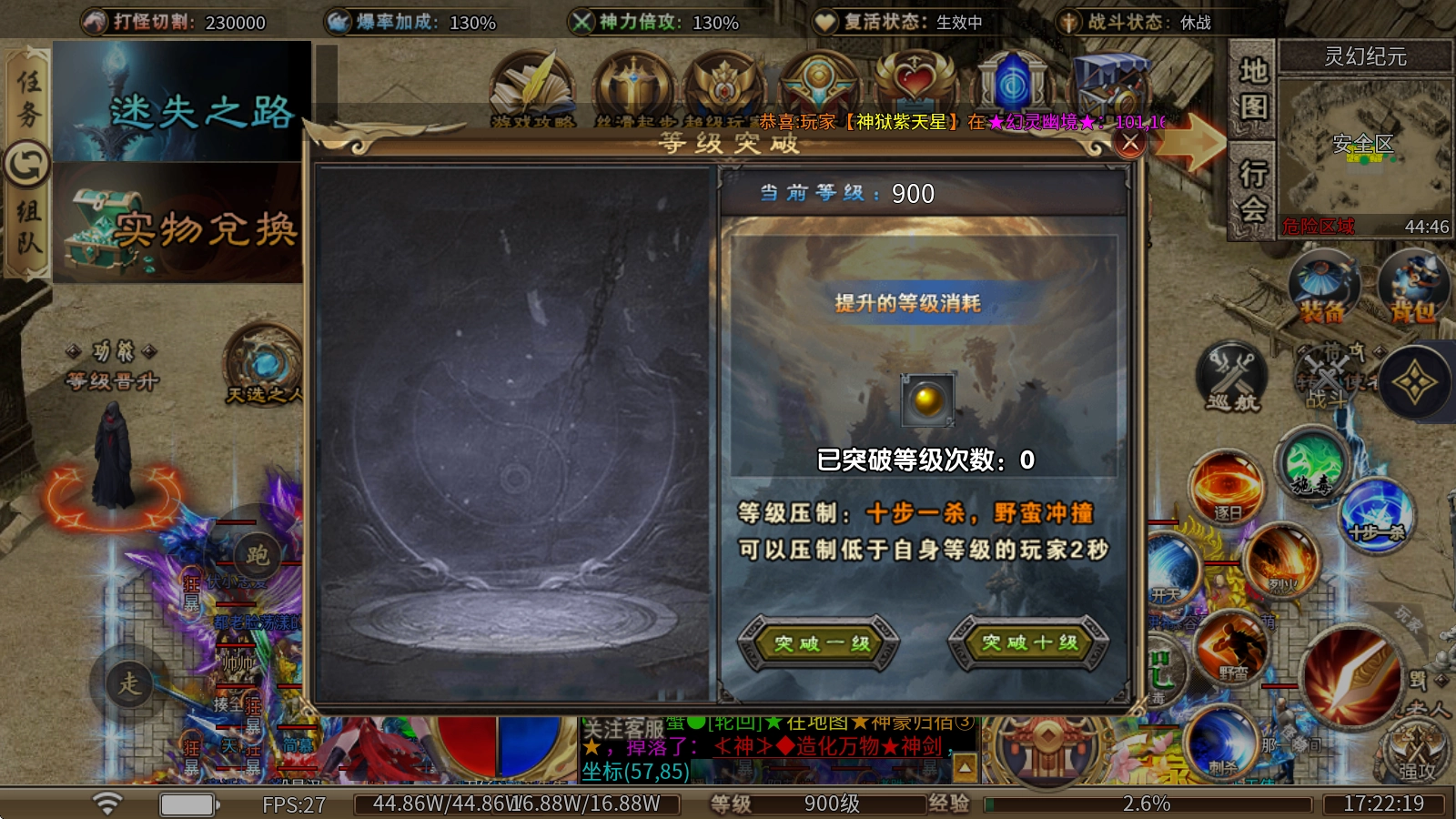 3、等级晋升机制:玩家需消耗等级丹以实现等级突破,此外,高等级玩家会对低等级玩家形成压制效果。