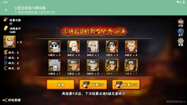 5、专为火影忍者粉丝打造的忍者招募模拟器,操作简便,能满足玩家渴望获得心仪忍者的心愿。