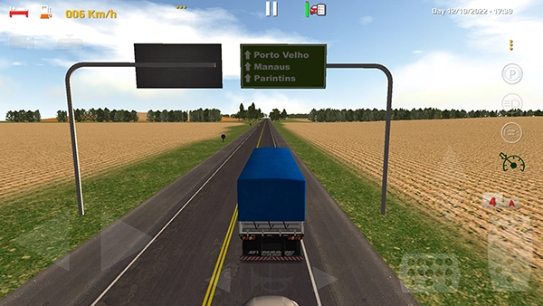 3、把档位挂到“1”档之后,点击右下角的油门按钮,就能让卡车慢慢向前行驶了。