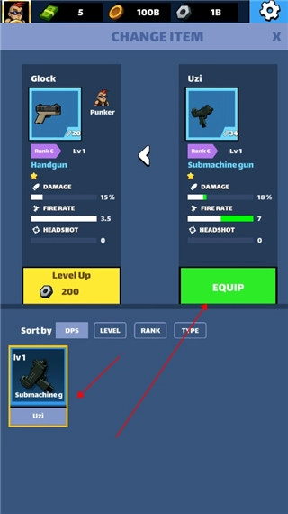 6、回到主界面后,可进入角色升级页面来进一步增强角色能力,另外也能通过左上角的选项来更换武器。