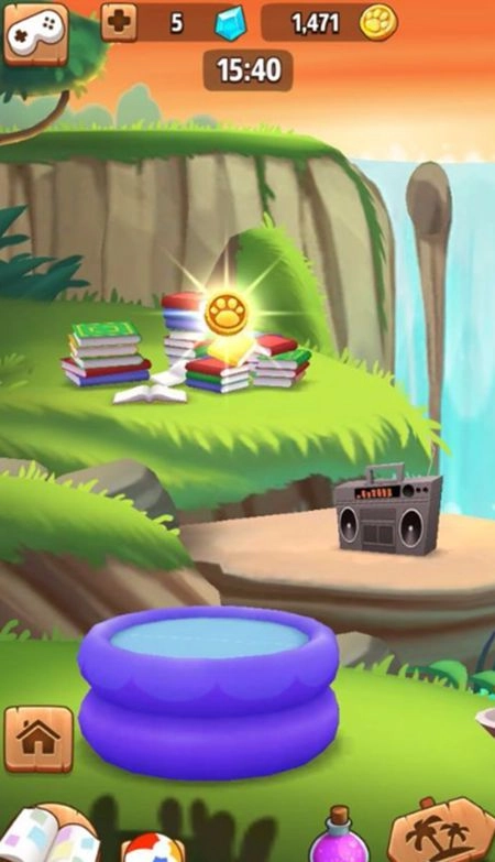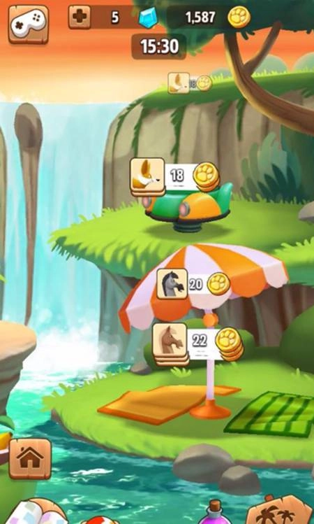 当你在场景里放置好食物或者玩具,动物就会停留一会儿,还会拍照记录下来,等它们离开的时候,会掉落金币让你去收集。