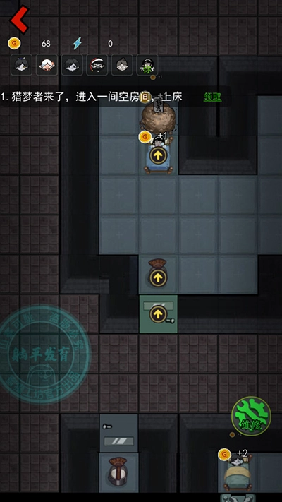 5、上床后能从NPC那里获得大量金币和电力,建议先升级门,再安排防御设施。