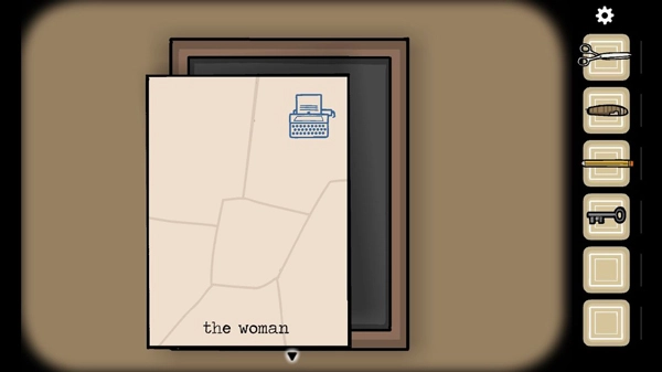 稍微转动一下就能看到那些漂浮着的照片碎片,把它们都收集起来拼成完整的图像后,会发现背面写着“the women”,这提示我们要去打字机那里输入这个词组,别忘了中间有空格哦!