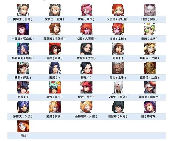 以下为英雄基础图鉴(不含一星角色):