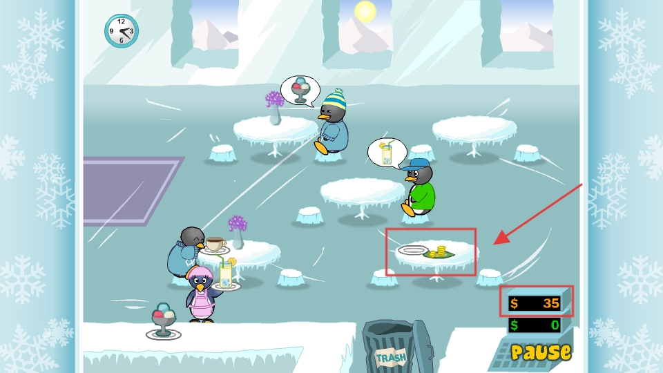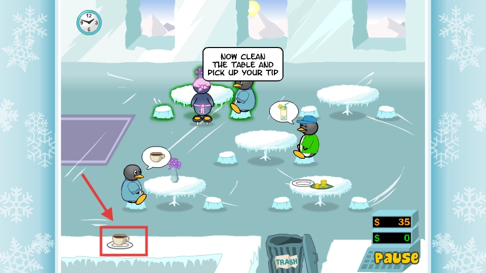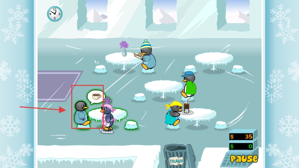2、留意顾客的点餐需求,就像这位想要【咖啡】的企鹅,要及时供应相应餐品,以此提高顾客的满意度。