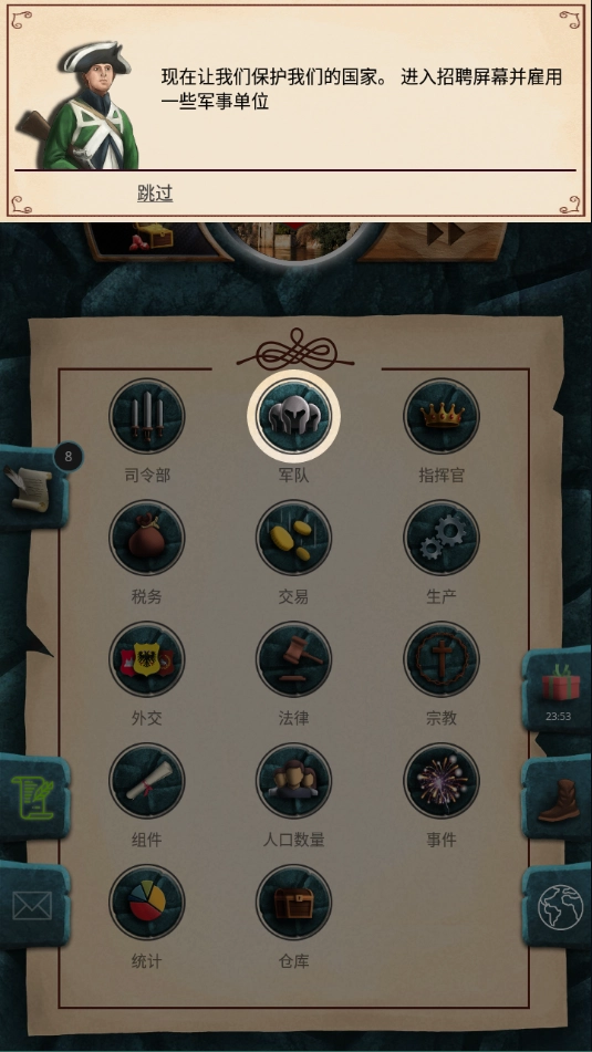 总体而言,尽管内容繁杂且体系庞大,不过只要抓住核心逻辑,就能游刃有余地应对复杂局面。陆军主要划分为指挥模块和军营系统,前者可开展攻击、侦察、破坏、授予独立权等操作,还能组织军事演习来增强部队的战斗力。