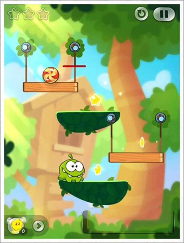 4、Om Nom的全新探险之旅来啦!感受全新的画面、音效与游戏元素,其中还包含了能够移动Om Nom的功能哦。