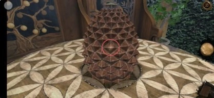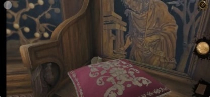 7、触发第二层机关,操作步骤为:先将装置向右翻转,接着再向下翻转(需确保机关上的小球与背后椅子上发光球的位置对齐)