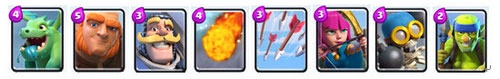 这款卡组的特点在于圣水消耗较少,单位部署速度快,进攻与防守能力较为均衡但均无特别突出之处,比较适合操作水平处于普通水准的玩家;不过它的短板是应对王子偷家这类战术时表现相对薄弱。