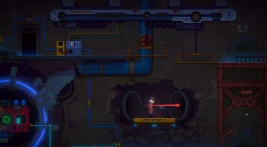 2、通电后激活控制台,升起升降台并转动红色阀门引出水流,右侧E-3门内可获取【遗落的机器人笔记】。