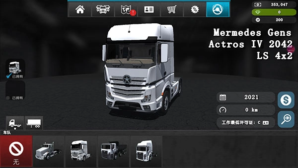 3、通过工作赚取收入,购置全新的卡车与拖车,在开放世界中自主挑选任务并完成货物运输。