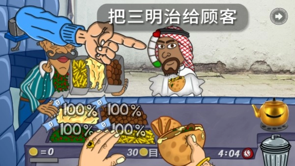 1、这是一款以阿拉伯餐厅为主题的游戏,里面涵盖了鹰嘴豆泥、法拉费尔、沙拉、薯条、披萨汉堡等多种餐食元素。
