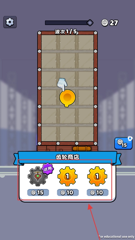 在齿轮商店里,要依据银币的数量来挑选齿轮。其中,【试用】齿轮需要消耗【15银币】,【1】级齿轮则需要花费【10银币】,大家可以合理搭配这些齿轮来抵御僵尸。