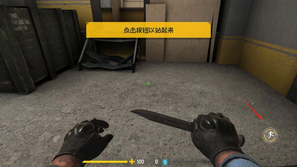 4、遇到狭窄通道时点击“蹲下”按钮;
