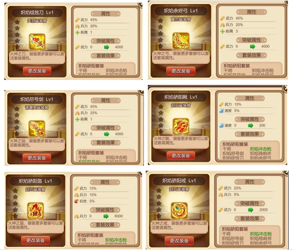 这套装备主打物理属性,包含头盔、鞋子与三件首饰。在草原地形中,能带来武力提升30%、暴击增加30点的效果,比较适合马超、董卓这类非主力输出型角色使用。