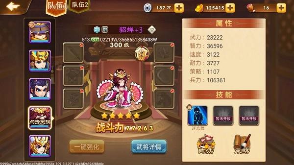 郭嘉属于稀有武将,获取难度较高。其核心优势体现在策略伤害加成达到175%的高额数值,且专属效果具备无视魔免的特性;搭配周瑜的减速效果与诸葛亮的复活机制,可切实避免首回合被秒杀的情况,是后期控场流派中不可或缺的关键成员。不过,该武将对阵容配置有一定依赖性,需要与诸葛亮、孙策协同作战,才能充分发挥其最大价值。