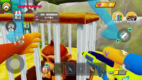 3、搜寻所有猴子的所在之处,拟定恰当的救援方案,在实施救援的过程中借助武器来保障自身安全。