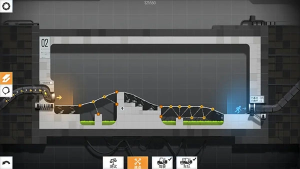 如果你对游戏充满科技感的画面和趣味十足的玩法感兴趣,不妨立刻开启这段独特的桥梁建造之旅!第一关: