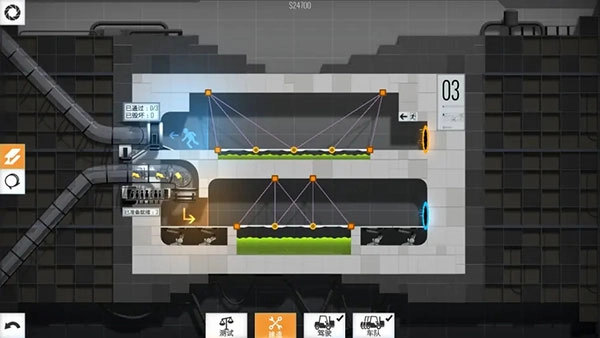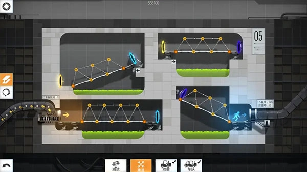 桥梁建筑师传送门中文版设有6个章节,每个章节包含10个关卡,游戏的烧脑难度会随着关卡推进逐步提升。