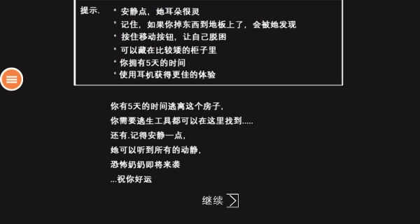 3、请务必记住游戏给出的提示,移动时要保持安静,拿取和放置物品都要轻手轻脚,要善于利用衣柜来躲藏,同时要合理安排5天的逃脱时间,并且优先去寻找逃生所需的工具。
