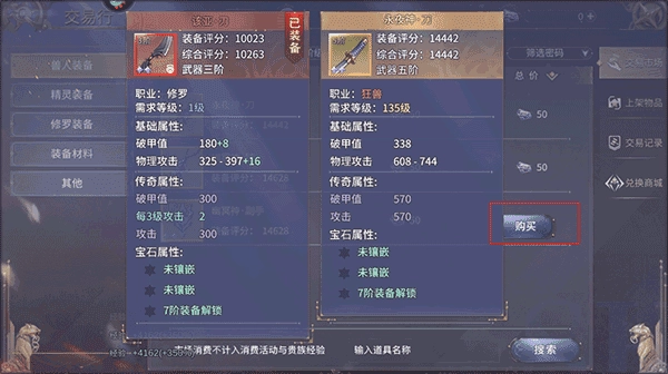 2、点击你想要的装备,点击购买即可。