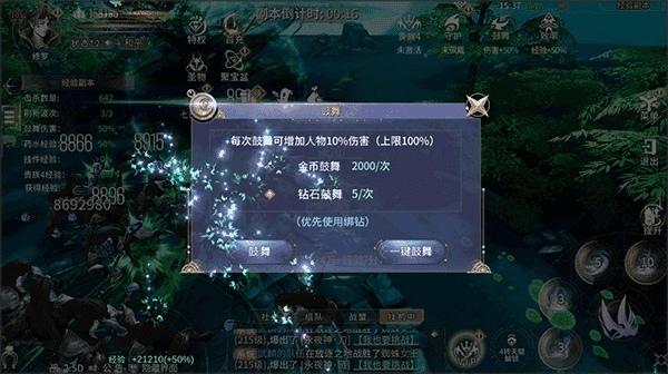 2、进入副本后,点击右上方的鼓舞按钮,能够提升人物的伤害输出,从而更快速地完成副本挑战。