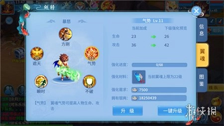 翅膀翼魂总计有5个可升级的选项,物理类职业建议重点提升气势翼魂,法术类职业则优先强化遮天翼魂。考虑到法术职业的伤害机制是将攻击力转化为法术伤害,所以法师在升级灵力翼魂的基础上,也需要适度培养和攻击属性相关的翼魂。