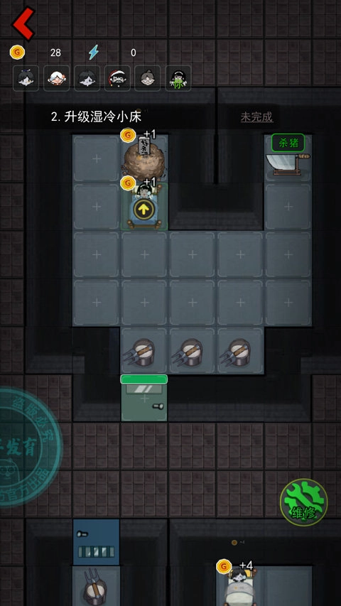 玩家要在宿舍里挑选合适的位置搭建防御塔,依据敌人的种类来合理升级塔防装备,从而增强防线的防御能力。