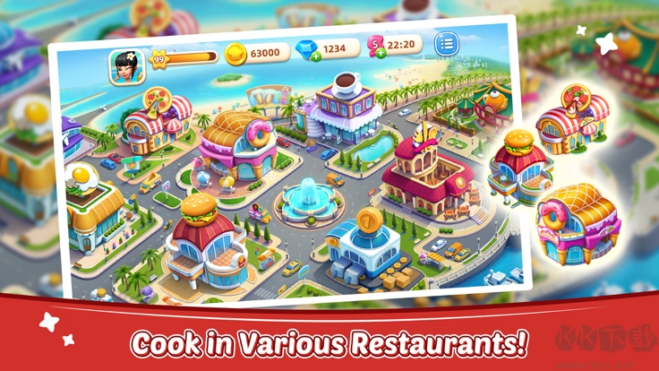 首先,《小镇大厨》是一款时间管理类模拟经营游戏,核心玩法是完成做饭等时间管理任务来收集金币与钥匙,进而解锁新地图和新店铺,推动小镇持续发展,同时体验来自全球各地的美食与文化。