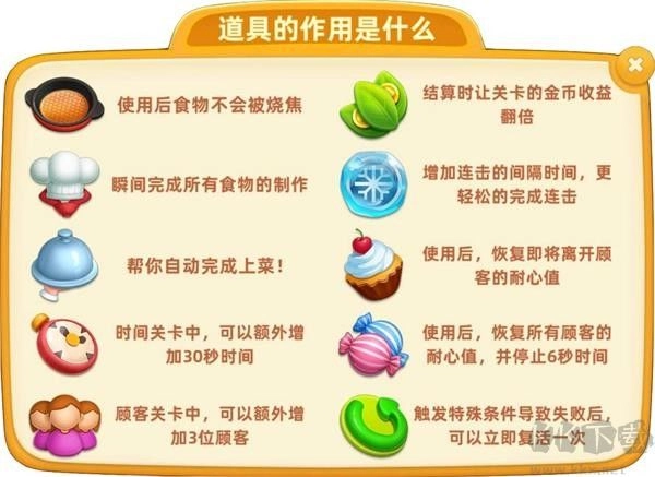 在《小镇大厨》这款游戏中,为了助力大厨更顺利地通关并收获更高的收益,游戏内准备了种类丰富的道具供大厨挑选使用。