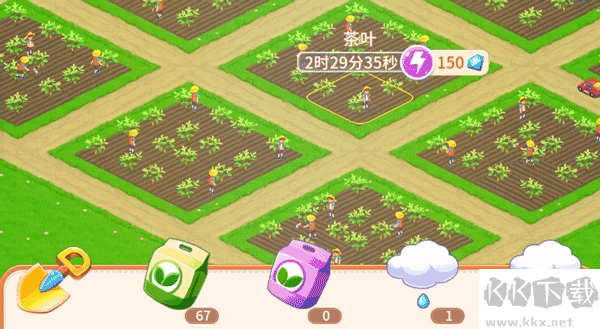 4、作物在不同生长阶段会呈现出不同的形态,当作物成熟后,点击相应位置会出现镰刀图标,此时拉动镰刀并在成熟作物区域滑动,就能完成收割操作。