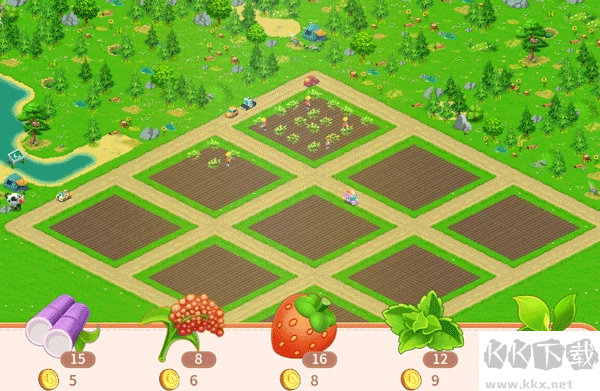 3、开垦农田种植作物,修建围栏圈养家畜,通过合理规划建设,推动农场更加繁荣。