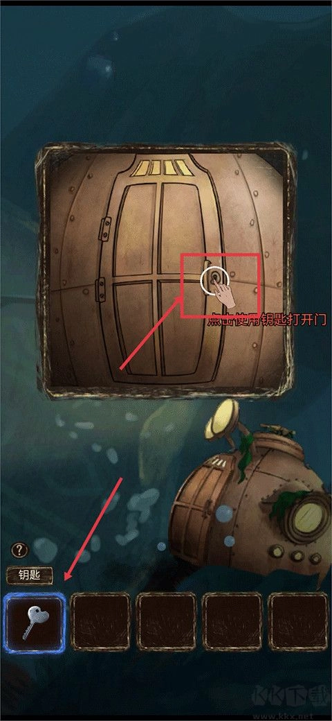 2、获取物品线索后,点击该线索并利用它解开谜题,比如图中找到的钥匙,就可以用它来开启门。