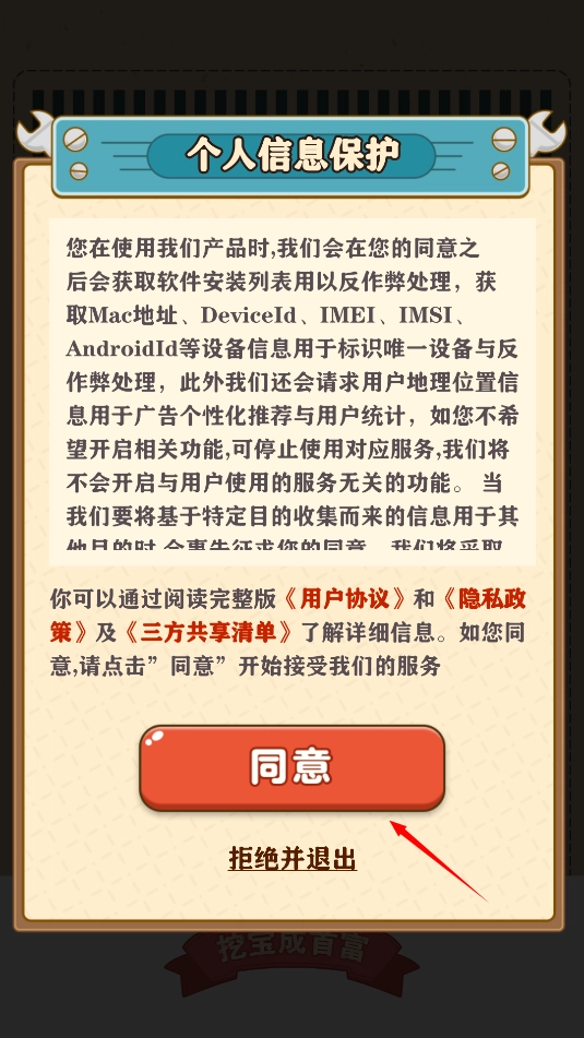 1、同意相关的使用权限后进入游戏