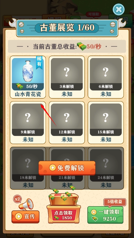 2、在这个页面中可以查看已解锁的古董信息