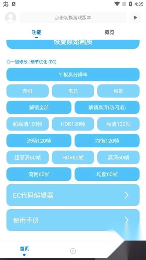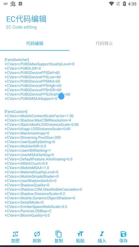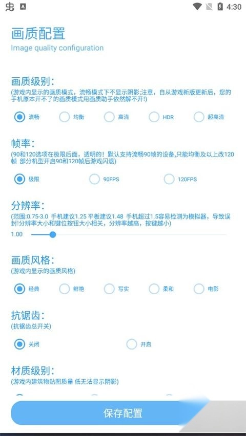 软件支持自定义代码功能。玩家可以根据自己手机的性能和喜好调试最适合的画质设置。