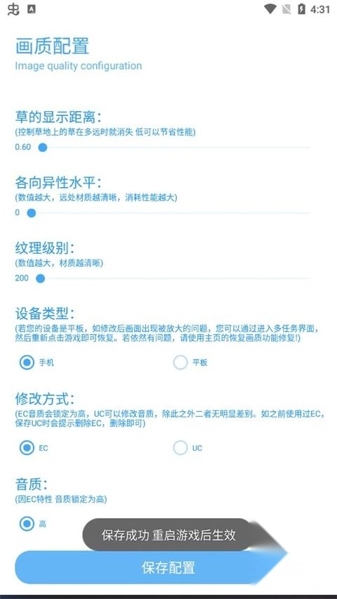 除了画质优化,软件还提供了一键修改音质的功能,让玩家在享受高清画质的同时,聆听超高音质的美妙旋律。
