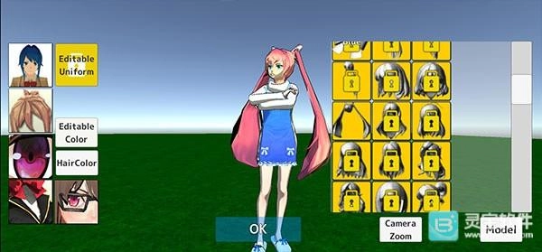 2、界面左侧按从上到下的顺序排列着套装、发型、眼睛、装饰与眼镜这些装扮选项;右侧展示的是各类尚未解锁的新造型,点击相应造型即可完成解锁并使用。完成装扮后点击“OK”确认即可。(另外,右下角的Model区域有不少搭配好的精美人物套装,大家可以直接一键选择使用)