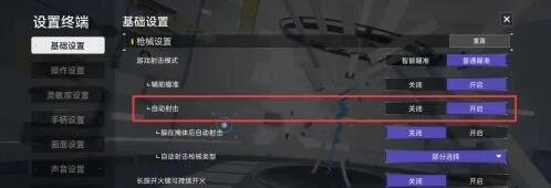 2、进入设置界面后,找到“自动射击”选项,点击其后方的开关按钮将其开启即可。
