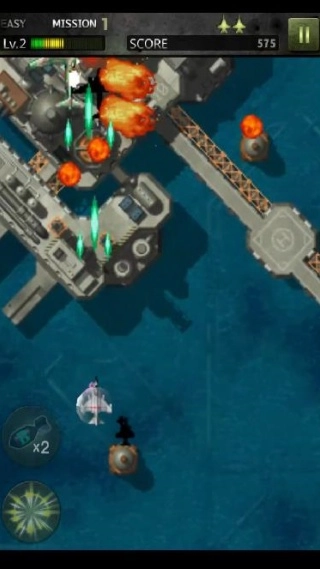 1、操控战机躲避密集弹幕,精准射击敌机和BOSS,积累分数与资源。
