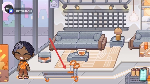 1、进入仓库场景,找到地面上的搬运车道具,点击选中该道具。