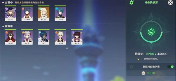 如果打完一场副本整个队伍的血量都比较少,可以飞到神像集体回血,这样你就不需要浪费食物,神像回血的能量虽然不是无限的,但只要供奉升级后存量就会多很多,基本上已经很足够了。