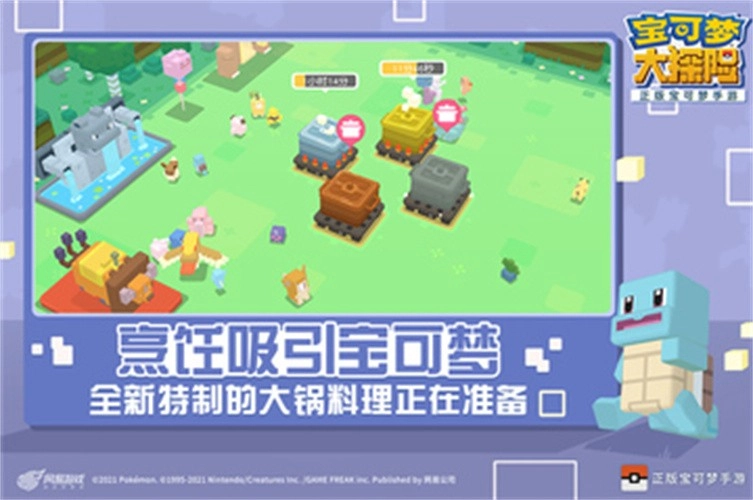采集食材、烹饪美味料理,可爱的方形宝可梦们就会被吸引而来。烹饪全新大锅料理,一次吸引更多宝可梦!